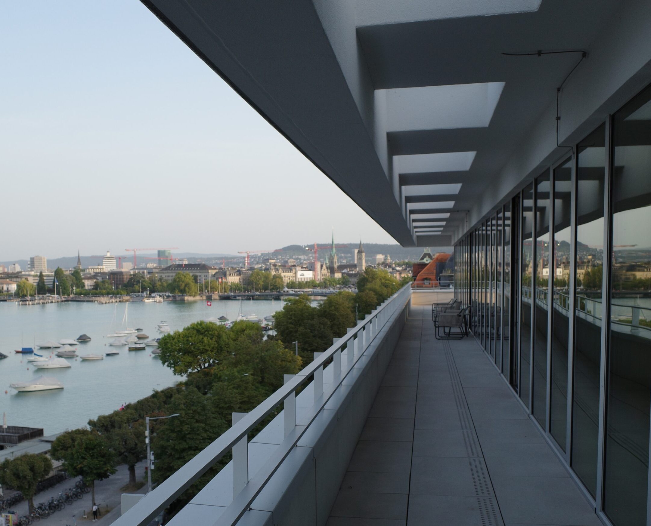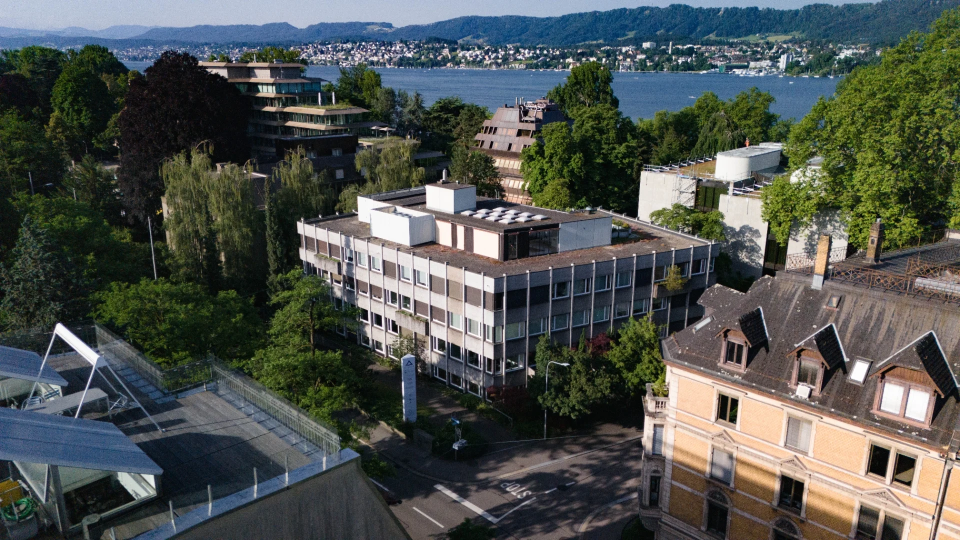 The building offers bright, well-structured workspaces, easy access, and a rooftop terrace for moments of pause—an ideal place for focused work in the heart of Seefeld.